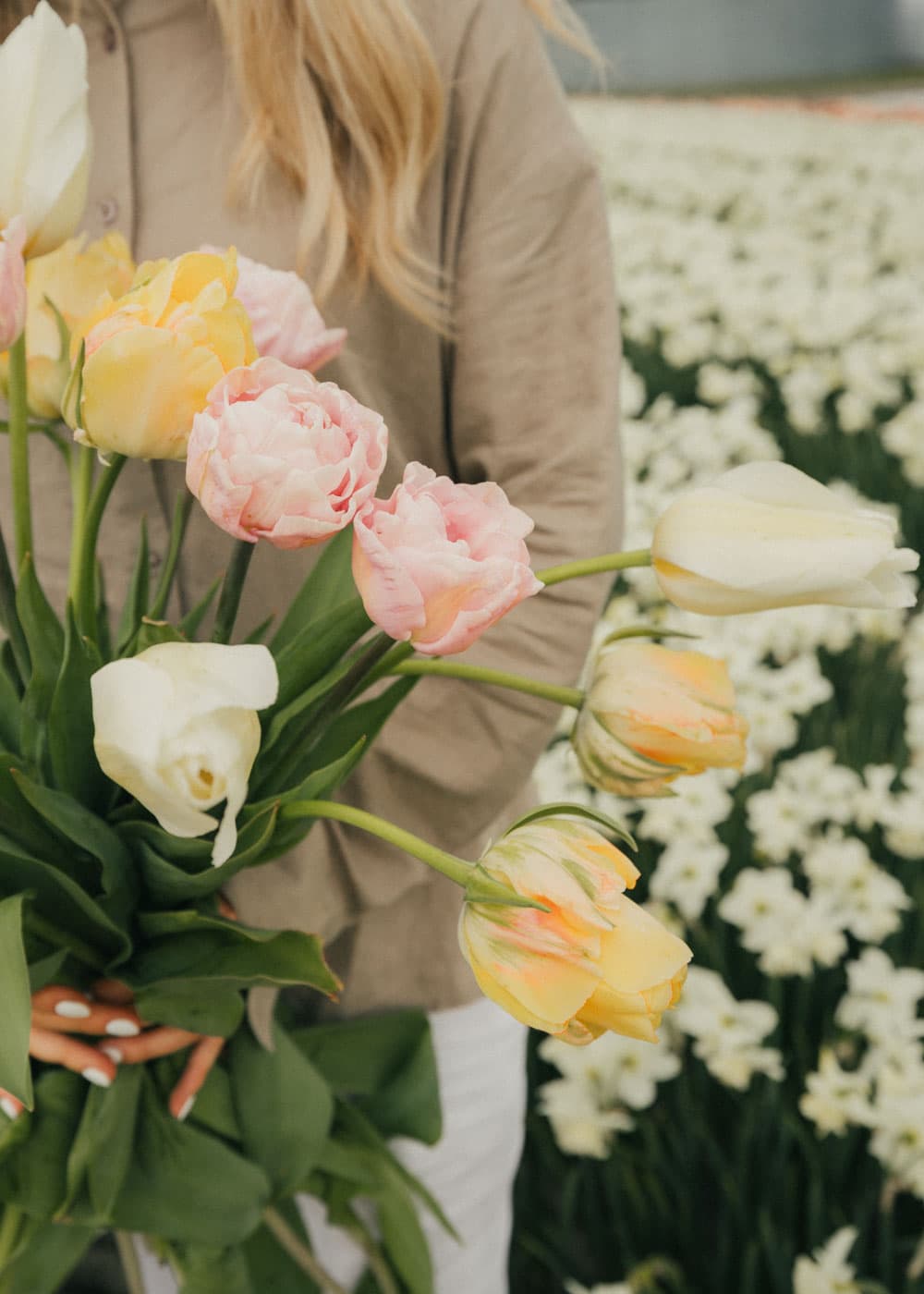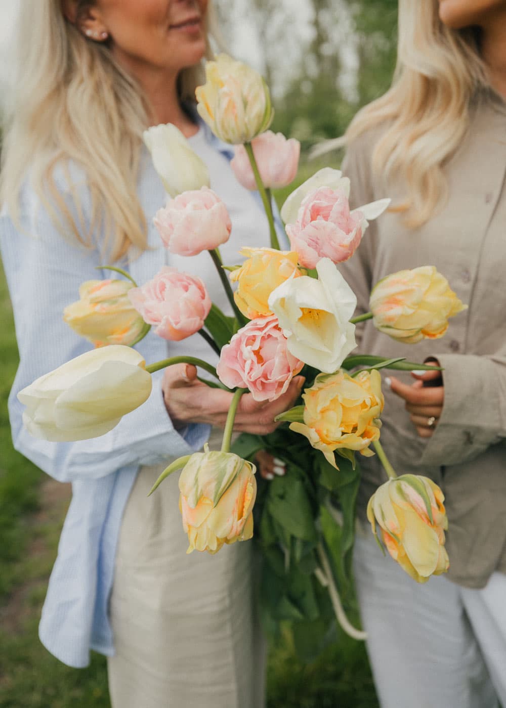 Diese fantastische Tulpenmischung wurde von unseren hübschen Finalisten unseres Tulpenwettbewerbs – dem Mutter-Tochter-Duo Bella und Linda – ausgewählt. Gemeinsam durften sie durch die Tulpenfelder schlendern, ihre absoluten Lieblingssorten auswählen und ihre ganz eigene Mischung aus Zwiebeln zusammenstellen. Das Ergebnis war wunderschön in Farbe, Form und Eigenschaften. Eine bezaubernde Mischung für den Garten und zum Mitnehmen für den Schnitt!