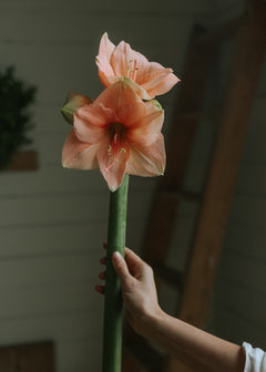 Rilona is a very unique and sought-after amaryllis variety with large apricot-coloured flowers. The variety has very long stems, which is one of the many reasons why Rilona is such a popular cut flower. It lasts an unusually long time in a vase and usually blooms a little longer than many other varieties, which we at Florea fell for.