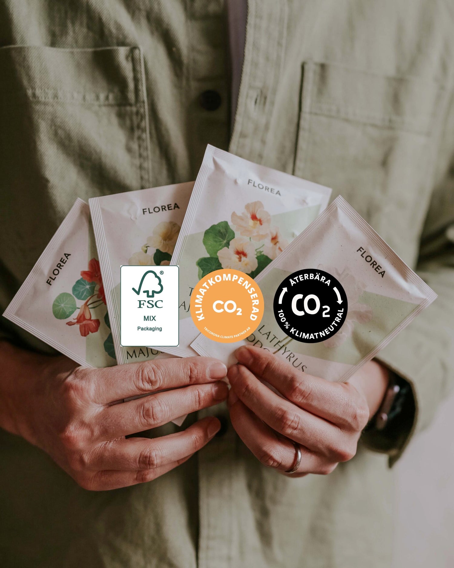 As far as possible, we try to use organic farming and methods that are gentle on nature. However, we have chosen to offset the emissions we cause, for example when shipping our goods. We are proud that our entire business is carbon offset.
