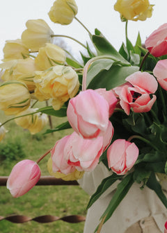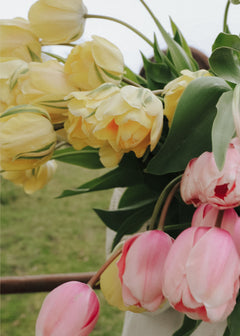 Den här ljuva tulpanmixen bjuder på en harmonisk kombination av ljusgult, aprikosrosa och krämvitt.