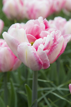 Finola är en dubbel tulpan som blommar lite senare. Den får vackra pionliknande blommor i en ljusrosa färg med strimmor av vitt och grönt i sig. Stora kraftiga lökar gör att den kan bli uppemot 45cm hög. Vi tycker denna blommar lite extra länge vilket alltid är uppskattat. Passar fint som snittblomma.