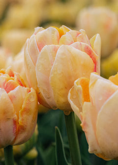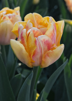Foxy Foxtrot är en dubbel tulpan som blommar tidigt under säsongen. Den blir gul-orange med slag av rött vilket gör den helt oemotståndlig och ganska unik i färgen. Passar fantastiskt som snittblomma men även i rabatten. Blir ca 30cm hög och får underbara pionliknande blommor.