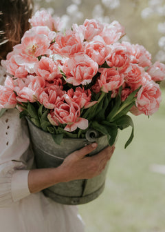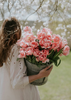 Foxtrot is an early-season double tulip. A true charmer that changes color while it blooms. It transitions from dark pink to light pink, making it very unique and beloved by us at Florea. Foxtrot reaches a height of approximately 30cm.