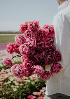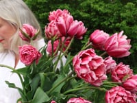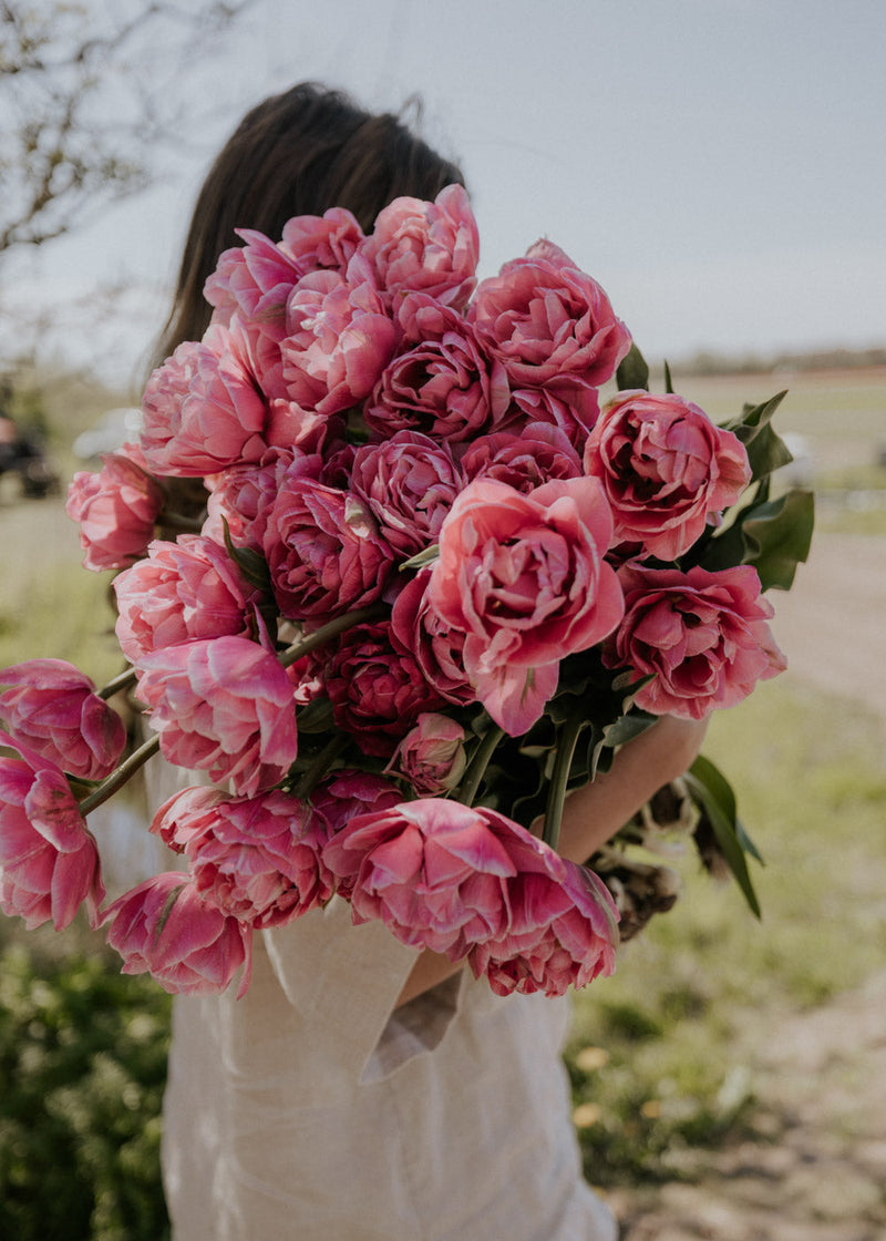 Aveyron is a double tulip in a vibrant pink color that can have small green streaks in white or green.