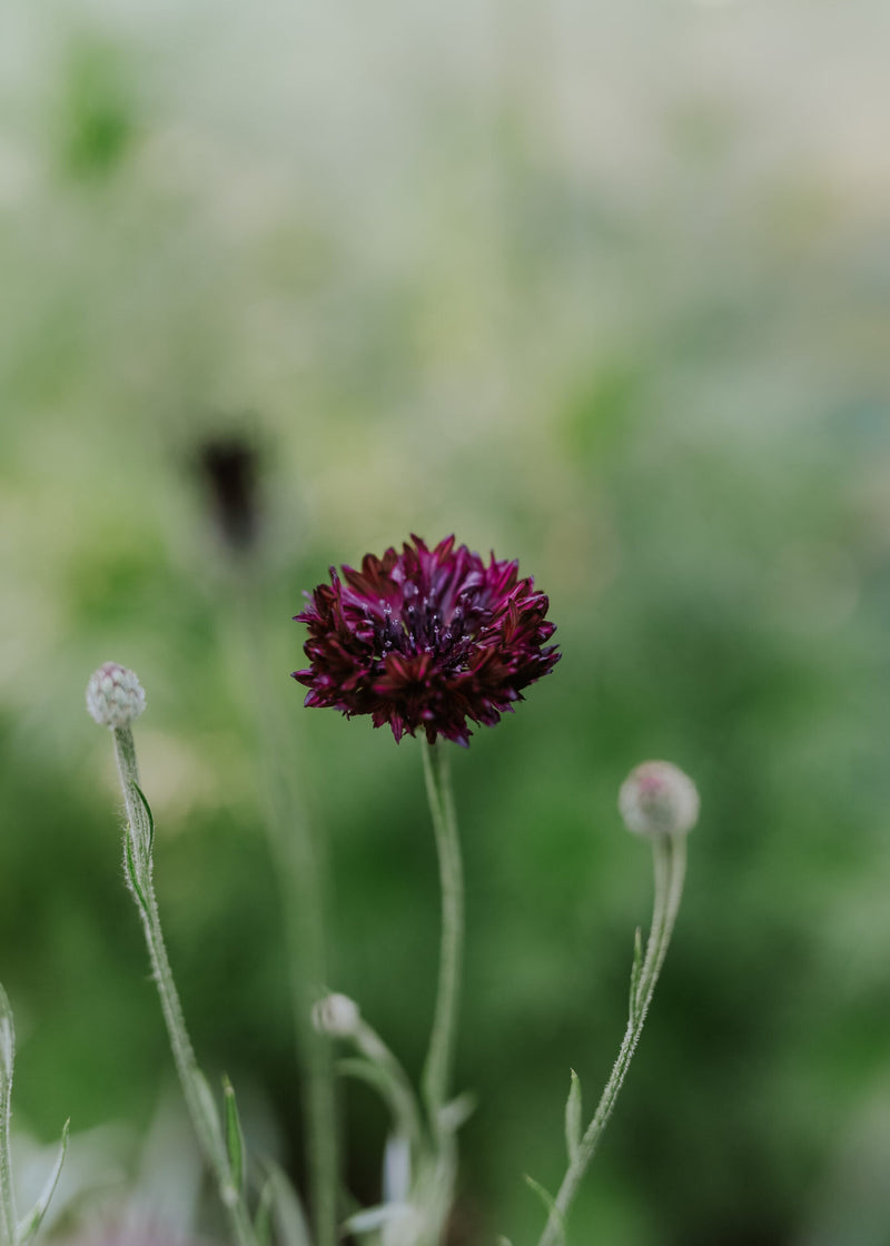 A enchanting and unique cornflower with dense and double flowers in a dark purple color. It is loved by all our pollinators and is a classic variety with a new and modern twist. The plant has a low and compact growth habit that is excellent for edging borders, planting boxes, and pots. Black ball is incredibly beautiful and magnificent in bouquets as freshly picked, but also as dried flowers. The striking and unique color makes this variety stand out and excel in wreaths, flower arrangements, and bouquets.