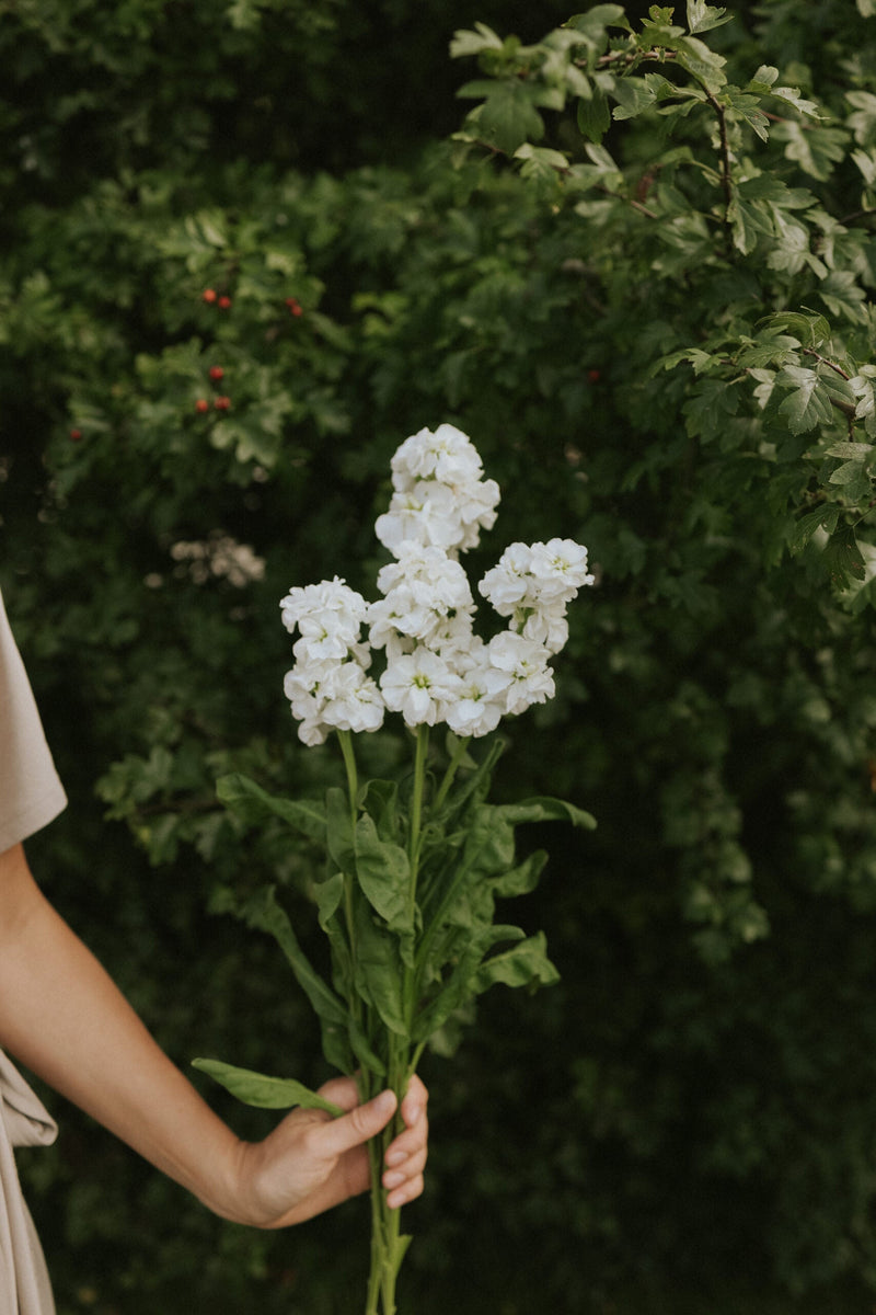 A charming sweet Matthiola/Gilly flower with double flowers in a beautiful white shade. Early Iron White produces long and sturdy stems that are excellent for bouquets. A big advantage is that it also lasts unusually long in a vase – with a little fresh water and new cuts, it can stay beautiful for up to two weeks without any issues. Unlike other Matthiola/Gilly flower varieties, this one also blooms exceptionally early!