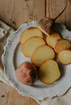 Imagine a summer plate of oven-roasted beets in enchanting colors with Chevré and honey, or a colorful fireworks display of pickled beets for hash. This variety is a special and incredibly fun growing experience for young and old, but perhaps it is most appreciated by our youngest. Harvesting the beets to see which color comes up from the ground is just as fun as eating the fabulous palette of goodies on the plate.