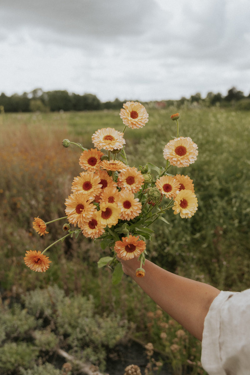 Gorgeous, multi-layered flowers in a lovely color combination of apricot, powder pink, and creamy yellow. This variety is an excellent cut flower and looks lovely in bouquets. It also fits well in borders and is incredibly easy to grow. It blooms beautifully well into the autumn and is known to be a very healthy variety that rarely suffers from disease. Not even slugs seem to want to eat the marigold, which is a big plus for gardens that struggle with these unwelcome guests.