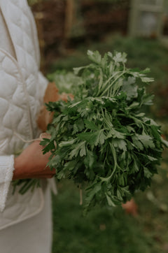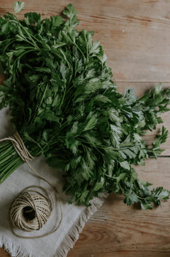 A delicate parsley with smooth, dark green, large leaves. Robust stems full of flavor that can be used, but preferably finely chopped. The leaves are also nice to use as a garnish, in pickling, on pizza, in pesto, in vinegar or other oils.