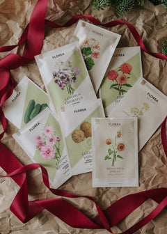 Inside this box are eight carefully chosen varieties, a mix of edible plants and flowers that can be sown directly into the soil. Here you’ll find soft white sunflowers, apricot zinnias and summer phlox in delicate buff tones. Pink cosmos and nasturtiums spread freely and beautifully together with crisp cucumbers and fragrant sweet peas.The seeds are beautifully packed in a gift box that awakens the joy of growing from the very first moment. A warm and inspiring Christmas gift for someone who wants to fill their summer with both blooms and flavors from their own garden.Included in the box:1 x Nasturtium – Double Salmon Gleam1 x Sunflower – White Sun1 x Zinnia – Oklahoma Salmon1 x Phlox - Isabellina1 x Cucumber – Lemon1 x Sweet Pea – Sicilian Sunset1 x Cucumber – Iznik F11 x Cosmos – Double Click Bicolour Pink