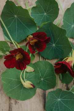 Both the leaves and the enchanting flowers are edible, making Black Velvet the perfect garnish variety. Imagine a caprese salad topped with both basil and the green nasturtium leaves, plus the stunning burgundy flowers – magical, isn't it?