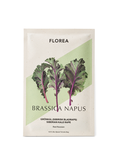Red Russian is actually Siberian Kale and a fantastic cultural heritage from 1863. However, the variety is considered a rarer "kale plant" due to its appearance. The decorative leaves are matte green with violet hints from the veins and stems. The variety is fast-growing and can withstand the winter even in our northern latitudes, which is one of many reasons why it has become so popular. It is most delicious after the first frost and can also be frozen when needed. It is excellent for making chips with olive oil, crushed garlic, and salt or fresh in salads because the taste is a bit spinach-like. It is incredibly vitamin-rich and can be cooked in any way that regular classic kale can.
