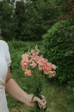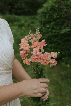 A wonderful variety of snapdragon in bronze and salmon pink tones with a touch of white. Its long-lasting and beautiful blooms make it an excellent cut flower, adding height and dimension to summer bouquets. The long flower spikes with double blooms are beloved by pollinators and make for a fantastic addition to any garden bed. Did you know that this variety is also edible and can be used as a garnish? We highly recommend Madame Butterfly Bronze with white for its delightful charm and versatility!