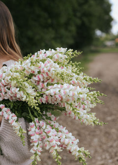 This enchanting variety of snapdragon has been named for its color tones that resemble a flowering apple tree. Is there anything more beautiful than an apple tree in bloom? If so, it must be this sweet rocket variety. Potomac Appleblossom has tall stems full of flowers in shades of white and pink. A grateful summer flower that blooms abundantly and beautifully from July to October.