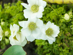 Anemone Coronaria The Bride is a romantic and timeless beauty with pure white, silky petals and a soft lime green center.