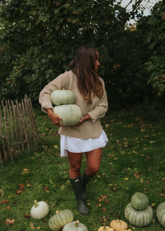 Plant out when the seedlings have hardened off properly in a warm and sheltered outdoor location or in a greenhouse. This variety needs a lot of space to grow and produce fruit in a sunny, sheltered position. Pumpkins thrive best in a sandy or light loamy soil. The variety needs plenty of nutrients and water throughout the summer season. Fertilizing many times is a good tip for a successful harvest! This variety likes to climb, so if you have problems with slugs, for example, you can use a trellis or other type of plant support that the vines can climb on.