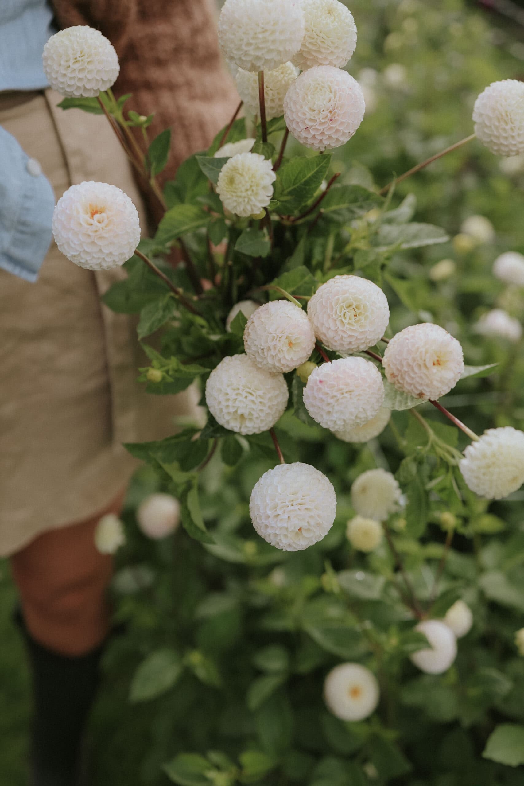 Small World is one of the most popular dahlia varieties when it comes to cutting. This white beauty produces lots of pompom flowers with a light marbling. The flowers grow to about 4 cm in size, making this variety the ultimate for bouquet making as it can easily be woven in with other summer flowers. The variety has extremely strong stems and long vase life.