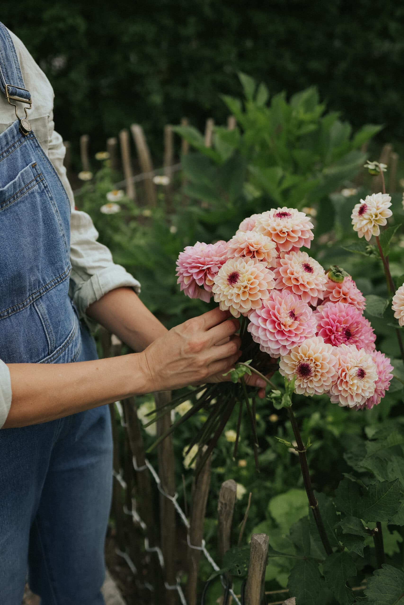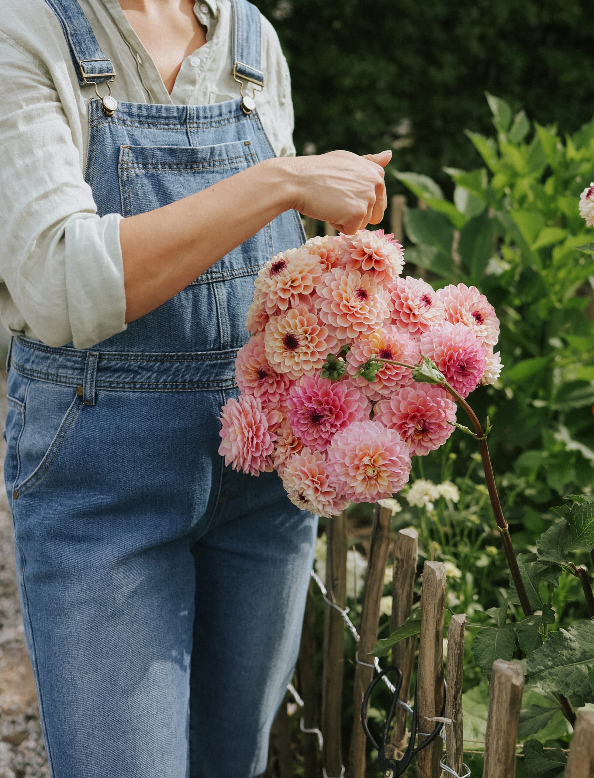 A new favorite dahlia for us at Florea, one we can’t do without anymore. Wine-eyed Jill produces an abundance of beautiful flowers with a size of approximately 10 cm in diameter. It comes in magical colors of light pink and cream with hints of both honey and charming magenta. This variety has unusually long stems, which has made it incredibly popular in the florist world. Wine-eyed Jill is also known for its long vase life and its enormous flower production. The fact that all the flowers have a varying appearance in terms of color is a real bonus!