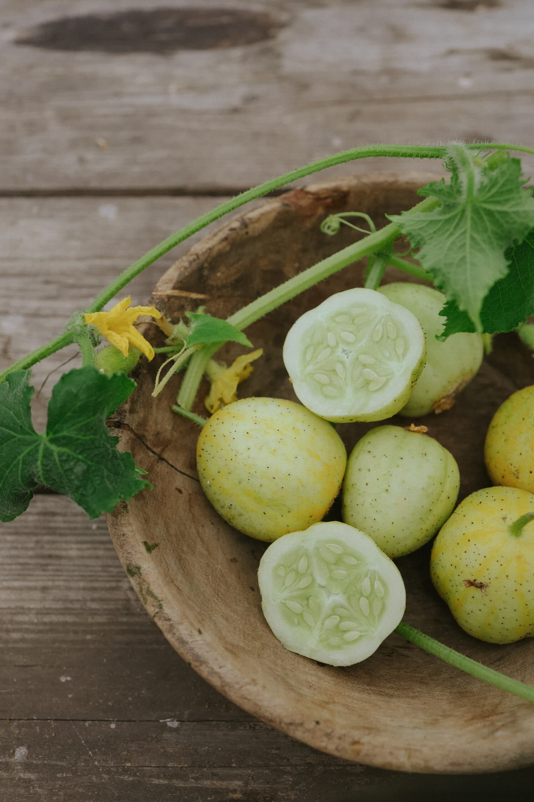 A magical heritage from 1894. An amazing cucumber variety that, with its unique shape and taste, has a tendency to charm everyone lucky enough to try it. Lemon produces plenty of delicate cucumbers with a round shape in a beautiful yellow-white-green color. The spherical cucumbers have both a tanginess and sweetness that work excellently in salads. It is easy to grow and provides a plentiful harvest through the season. It also fits very well for pickling in all its forms.