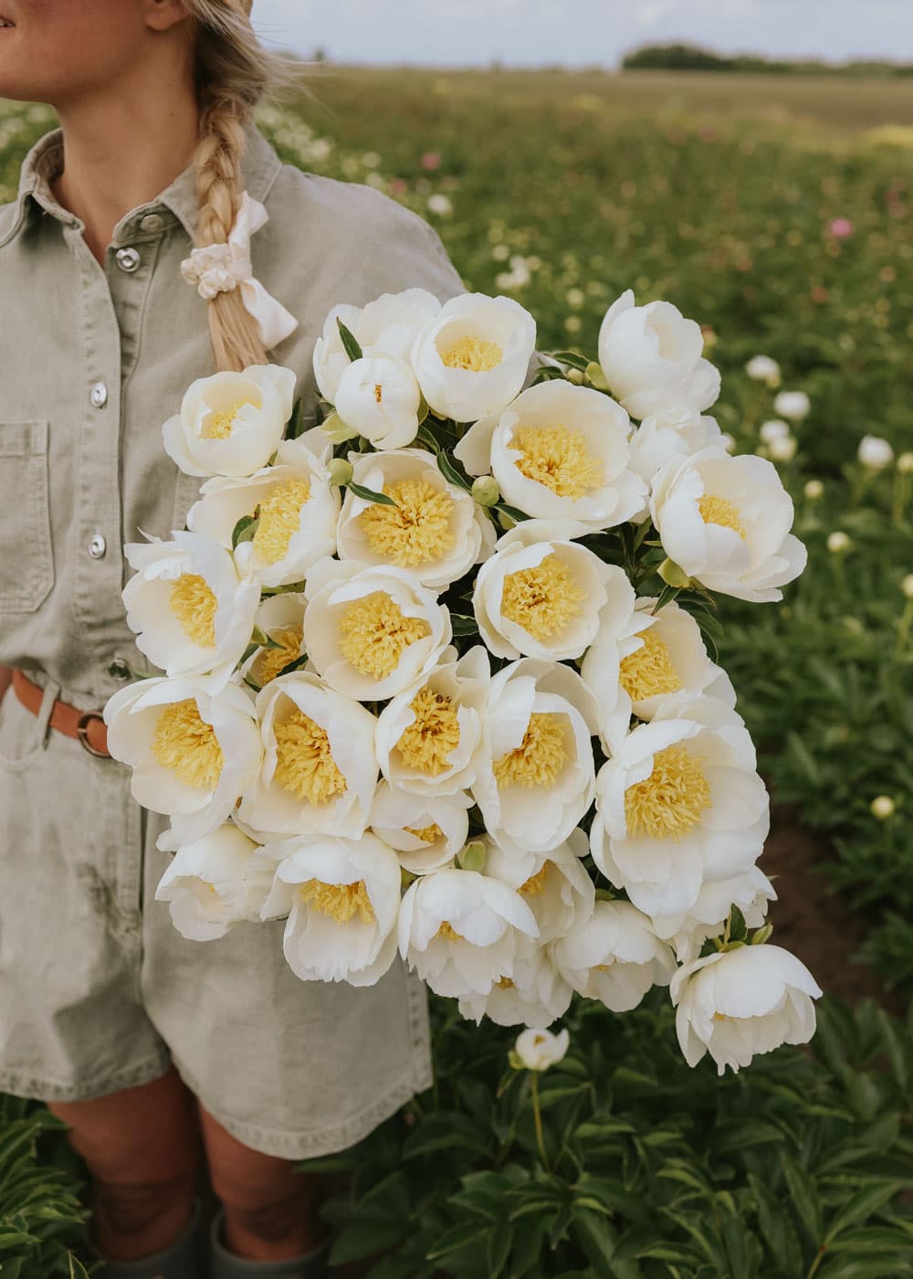 Jan van Leeuwen, with its classic name that is not so easy to pronounce, is a wonderful single-flowering peony that smells delightful. White petals with their yellow center make it a very characteristic flower. A very reliable variety that may take some extra time to establish itself, but once it has done so, it provides fantastic flowers year after year. Sturdy stems ensure that it stands firm in rain and wind and is excellent as a cut flower.