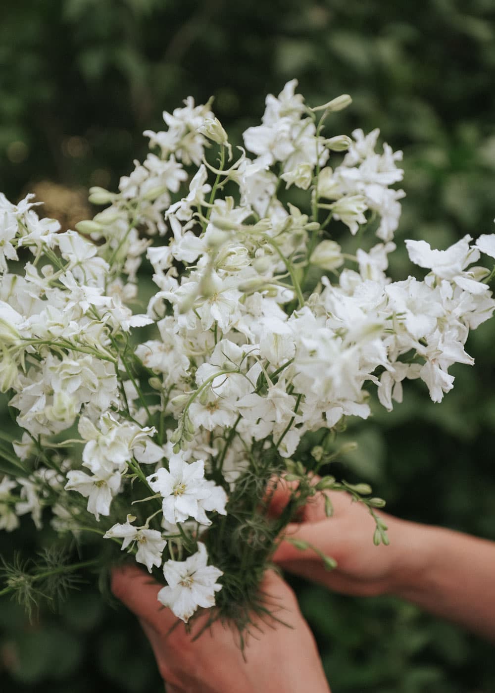 It is magical as a background plant in flower beds thanks to its height and very popular among all our pollinators. The variety is easy to grow as long as it is placed in a sunny spot with nutritious soil. If you have not grown Larkspur before, we highly recommend trying White King, with a gentle warning that it is somewhat addictive because it is so incredibly beautiful.
