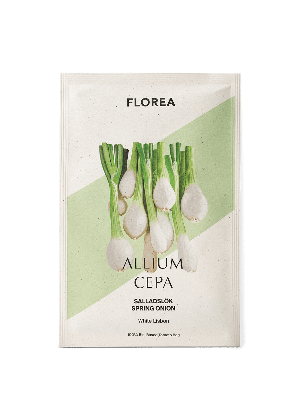 A popular and well-known spring onion with long, silvery-white stems and beautiful light green leaves. The variety has a mild and appetizing flavor that is excellent in salads, for example. White Lisbon is known for its long storage time after being harvested. If the onion is left in the soil for a longer period of time, a white, round onion is formed which is also very flavorful.