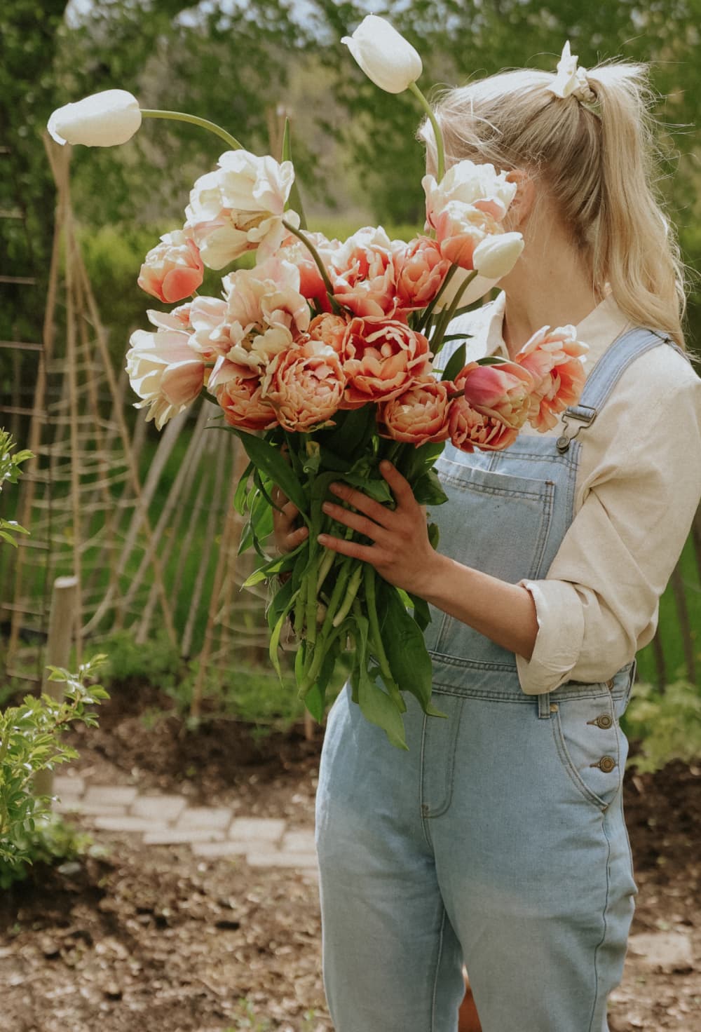 A mix of tulips that adds a lovely splash of colour to both the bed and the bouquet. Contains some of our favourite tulips in pink, sunshine yellow and pearl. Long vase life makes them perfect as cut flowers.