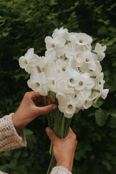 Une belle nouveauté de narcisse dans une magnifique couleur blanc nacré scintillante. De belles longues tiges qui durent longtemps dans les plates-bandes et en pot. Une nouvelle variété favorite de notre Anna Kubel qui a cultivé cette merveilleuse variété pour la première fois cette année dans son jardin inspirant. Elle y trône magnifiquement au printemps, aussi bien directement en pleine terre qu'autour de beaux pots en terre cuite.