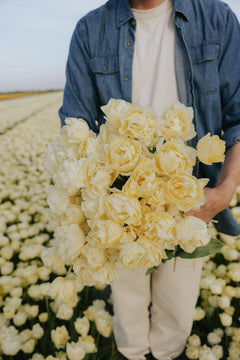 Bien-aimée Verona, une variété de tulipe dont nous, chez Florea, ne pourrions jamais nous passer. Parmi toutes les variétés de tulipes doubles, elle est généralement la première à fleurir et nous en sommes tellement reconnaissantes. Avec sa couleur jaune citron unique et sa forme pleine, il est difficile de mettre des mots sur son existence magique.