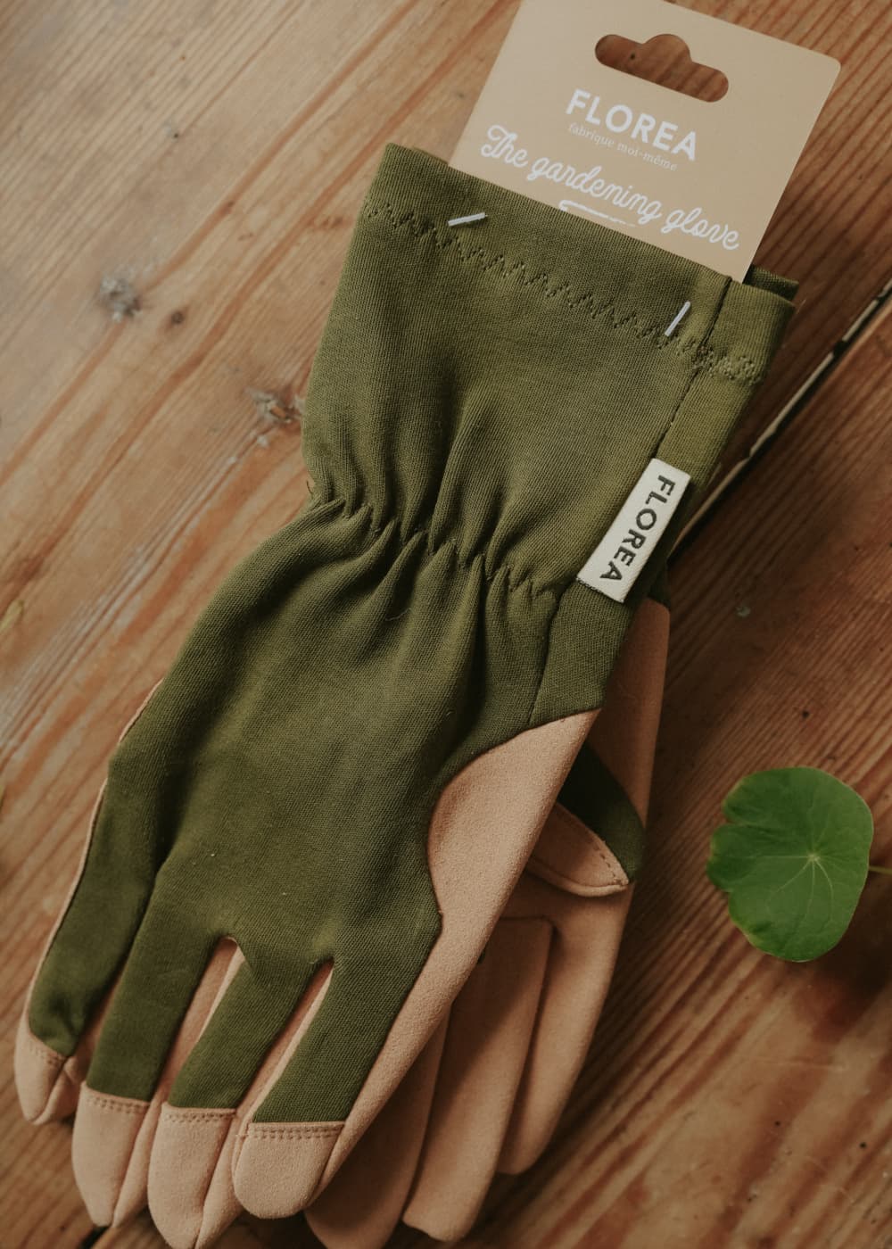Håndflaten og fingrene er laget av vegansk lær – et mykt, slitesterkt og vannavstøtende materiale som beskytter hendene når du arbeider i våt jord. Oversiden er laget av et glattstrikket stoff i hamp og bomull, noe som gjør hanskene luftige og komfortable selv på varme dager.