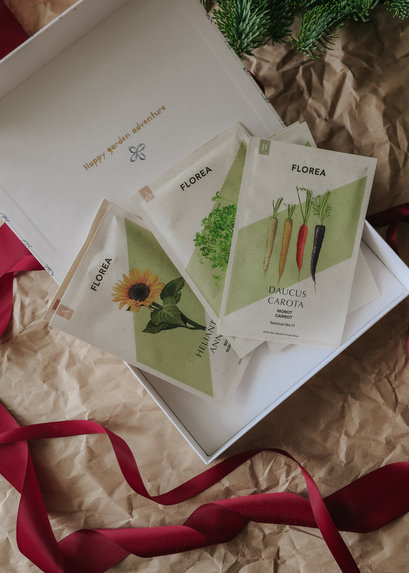 Denne esken inneholder syv nøye utvalgte frøpakker med varianter som er enkle å dyrke og fulle av karakter, perfekte for nysgjerrige små hender og store hjerter. Her finnes alt fra staselige solsikker og smakfull blomkarse til regnbuefargede gulrøtter, dyprøde rødbeter og sprø epleagurker som klatrer. Sammen med hurtigvoksende karse og et morsomt gresskar som sprer seg utover.Frøene kommer i en vakkert designet gaveeske som gjør det til et ekte eventyr å dyrke dem helt fra starten av.