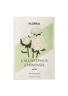 Denne astersorten har store, tett fylte blomster i en vakker hvit nyanse. Det vitenskapelige navnet kommer fra det greske ordet for "stjerne" og refererer til blomstens fortryllende form. Denne sorten blir utrolig effektfull i buketter og er også veldig dekorativ som tørket. En stor favoritt hos oss på Florea!
