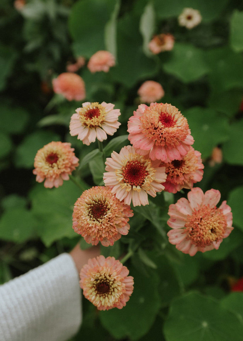 Just den här zinniasorten är omtalad för sina långa och stadiga och stjälkar som står sig ovanligt länge i vas. En magisk sommarblomma som ger den där perfekta färgklicken i rabatten och buketten det där lilla extra. Zinderella Peach är otroligt lättodlad och omtyckt utav alla våra pollinatörer!