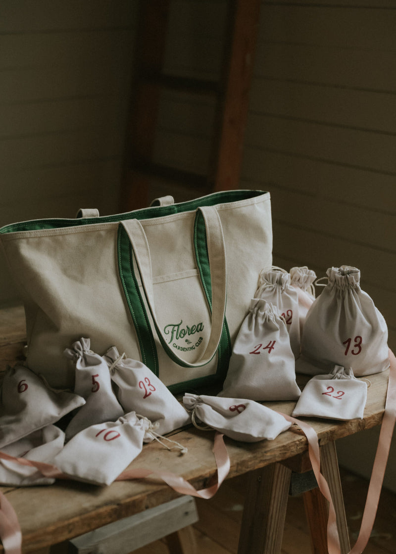 Till årets julkalender ville vi skapa något som håller, något du faktiskt vill använda varje dag. Resultatet blev vår slitstarka canvasväska: tidlös, rymlig och vacker nog att följa med från trädgården till stan. Den rymmer allt du behöver – och lite till. En väska du bär länge efter att sista luckan öppnats.