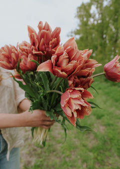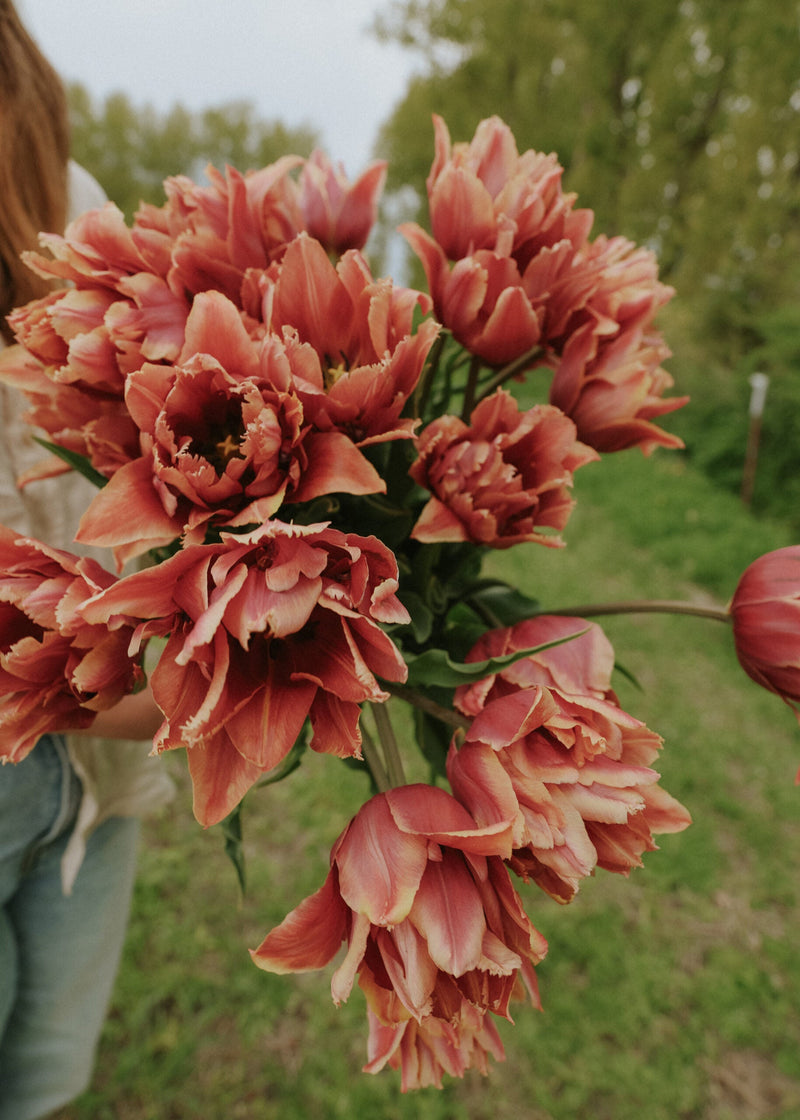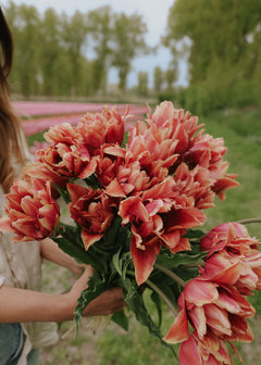 Tulpanen ‘Callahan’ bjuder på en underbar färgskiftning i nyanser av aprikos, rosa och varm karamell. De fyllda blommorna har en nästan pionliknande form och öppnar sig långsamt – och blir bara vackrare för varje dag som går. Den blommar storslaget från mitten till slutet av våren och passar mycket bra i samplanteringar med andra lökväxter som narcisser och pärlhyacint. ‘Callahan’ är dessutom en utmärkt snitt tulpan tack vare sin stjälklängd och goda hållbarhet i vas.