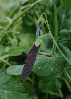 En charmig ärt med eleganta mörkt lila baljor och violetta blommor. Skörda dem tidigt som sockerärt och ät hela baljan. Om sorten skördas senare beheöver ärtorna spritas som märgärt. Det betyder att man plockar ut ärtorna ur själva baljan. Så sorten har två användningsområden, njut av nyskördade sockerärtor i början av säsongen och de spritade ärtorna under sensommaren.