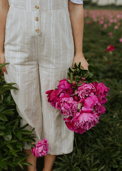 Av namnet att döma kan man tro att den här sorten är en röd version av den mer vanligt förekommande sorten ‘Sarah Bernardt’, men så är inte fallet. De två sorterna har faktiskt inget med varandra att göra, konstigt nog. Vi tycker inte heller att sorten är röd, utan snarare cerisefärgad. Hur som helst tycker vi att den är otroligt vacker och verkligen har sin plats hemma i trädgården. Den blommar rikligt och ger starka stjälkar vilket är två återkommande egenskaper bland våra pionsorter. Vi uppskattar helt enkelt att kunna njuta av pionerna både ute i trädgården men också att plocka in som snitt.