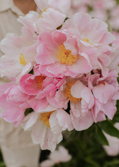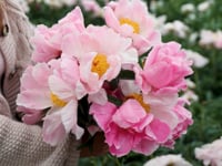 Sea Shell är en enkel blommande pion som doftar ljuvligt. Den har starka stjälkar som gör att den passar utmärkt att plocka in som snittblomma. Den börjar sin blomning i ganska kraftig rosa ton men desto längre den blommar desto mer skiftar den över mot det vita. En underbar blomma att ha hemma och följa skiftningen i färg. Vi älskar den!