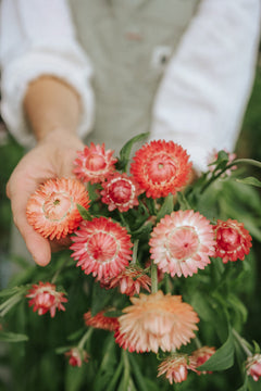 Denna ljuvliga sort får vackra blommor med en unik färgskala från rostig rosa till aprikos. Stjälkarna blir mörkgröna, höga och stabila vilket gör dem perfekta för snitt. Salmon Rose är kanske allra mest känd för sina otroliga egenskaper som torkad eftersom de klassiska evighetsblommorna behåller sin ljuvliga färgar och kan avnjutas i åratal.