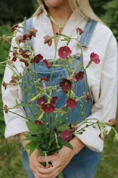 En graciös sommarblomma med en alldeles unik färg. Sorten får stora blommor i lite varmare och mörkare nyanser, allt ifrån mjuk roströd till mörkare vinrött. Blommar storslaget och rikligt hela säsongen fram tills att frosten kommer. Passar utmärkt till snitt tack vare sina längre stjälkar och harmonierar fint i buketter tillsammans med andra sommarblommor.