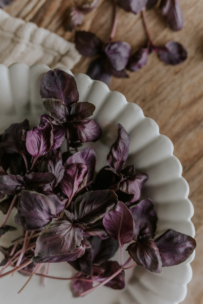En sagolik sallatbasilika med vackra mörkt purpurfärgade blad. Bladverken är lätt tandade, blanka och smakfulla. De tjusiga, ljuslila blomspirorna är inte bara otroligt dekorativa utan de kan även ätas och användas som garnityr. Bladen är goda färska som torkade i bland annat sallader och grytor. Förutom sortens ätbara egenskaper så är även purpurbasilikan en otroligt läcker prydnadsväxt. Den gör sig otroligt dekorativ i krukor på balkongen eller på fönsterblecket.