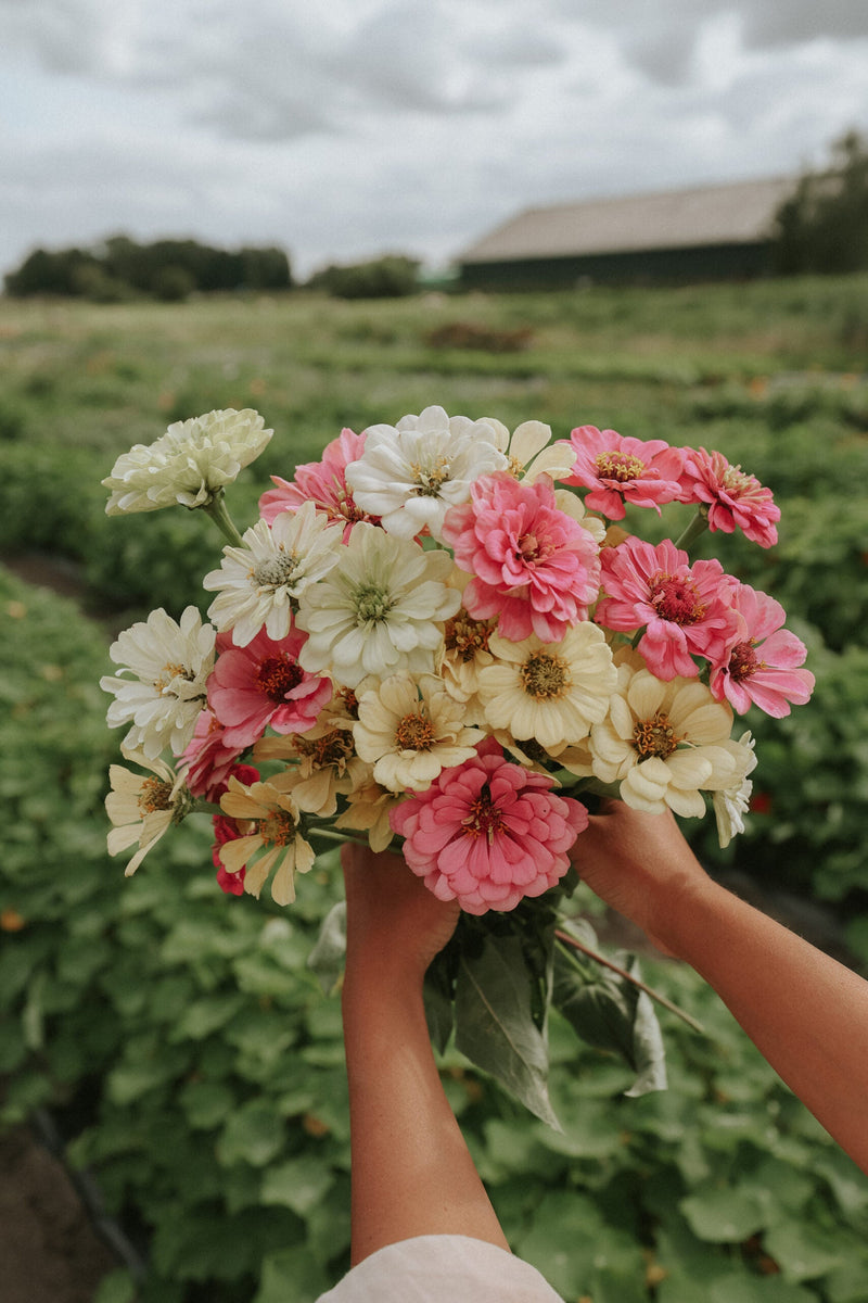 Vi på Florea älskar verkligen zinnior och har därför tagit fram vår alldeles egna zinniamix. En härlig blandning av våra tre favoritsorter Isabellina Creamy Yellow, Polar Bear och Luminosa. Mixen är otroligt lättodlad och går att både förodla eller direktså vilket är ett stort plus.