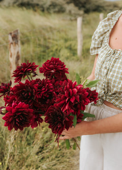 Dahlior trivs allra bäst i ett soligt läge men kan också trivas i halvskugga. Det viktigaste är att de får mycket plats för rötterna att växa på och att jorden är näringsrik. Om dahlian ska planteras i kruka så rekommenderar vi att den är på minst 30 liter och gärna större än så. Högväxande sorter behöver växtstöd eller bindas upp för att inte stjälkarna ska knäckas. Dahlior är väldigt törstiga blommor som lätt torkar ut och behöver därför en riklig men jämn bevattning. De behöver även tillgång till flytande näring några gånger under säsongen för att för att fortsätta frodas och blomma praktfullt ända tills frosten kommer. Rensa bort alla överblommande dahlior regelbundet för att främja tillväxten för nya knoppar. Detta kallas även för att deadheada och är superviktigt om du vill ha fina plantor med många blommor.