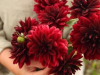 En dekorativ dahlia med sammetslena kronblad i djupaste vinrött som nästan övergår i svart när ljuset faller mjukt över blomman. Färgen skiftar subtilt mellan mörk bordeaux och varm purpur, vilket ger ett dramatiskt och samtidigt elegant uttryck. Blommorna blir omkring 12 till 15 cm i diameter och bärs på kraftiga, raka stjälkar som når cirka 100 till 120 cm i höjd. Sorten introducerades i USA i början av 2000-talet och har sedan dess blivit en favorit hos odlare världen över för sin intensiva färg, pålitliga blomvilja och sitt otroliga vasliv.