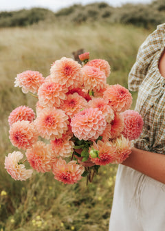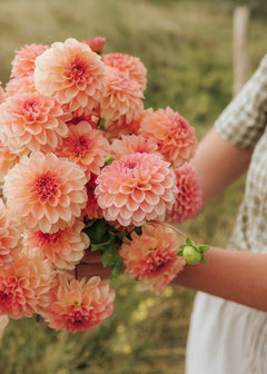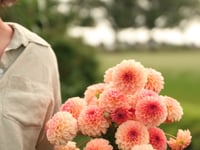 En dekorativ dahlia med mjukt rundade blommor i skiftande nyanser av korall, aprikos och varm rosé. Färgen förändras vackert med ljuset och varje blomma får sin egen lyster och karaktär. Ibland antar sorten en mer dämpad nyans och andra gånger en djupare ton, som om den blivit solkysst. Blommorna blir omkring 10 cm i diameter och bärs på upprätta stjälkar som når en höjd på cirka 90 till 100 cm. Sebastian blommar rikligt från juli till första frosten. Sorten härstammar från Nederländerna och har snabbt blivit en favorit bland odlare för sin pålitliga växtkraft och sitt milda, harmoniska uttryck. En dahlia som fångar sommarljuset och sprider värme i både rabatt och bukett på sitt alldeles egna charmiga sätt.