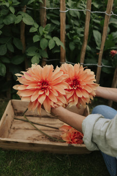Babylon Bronze blommor blir cirka 20-30 cm i diameter och tillskillnad från många andra tallriksdahlior så tittar denna blomsterprimadonna uppåt vilket gör den till en fantastisk snittblomma. En populär sort i floristvärlden inte bara för sin häpnadsväckande utseende utan även för sina fantastiska egenskaper. Stjälkarna är ovanligt långa och robusta vilket gör dem väldigt tåliga i buketter. Att sorten står sig extra länge i vas är också ett stort plus!