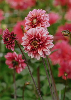 Dahlior trivs allra bäst i ett soligt läge men kan också trivas i halvskugga. Det viktigaste är att de får mycket plats för rötterna att växa på och att jorden är näringsrik. Om dahlian ska planteras i kruka så rekommenderar vi att den är på minst 30 liter och gärna större än så. Högväxande sorter behöver växtstöd eller bindas upp för att inte stjälkarna ska knäckas. Dahlior är väldigt törstiga blommor som lätt torkar ut och behöver därför en riklig men jämn bevattning. De behöver även tillgång till flytande näring några gånger under säsongen för att för att fortsätta frodas och blomma praktfullt ända tills frosten kommer. Rensa bort alla överblommande dahlior regelbundet för att främja tillväxten för nya knoppar. Detta kallas även för att deadheada och är superviktigt om du vill ha fina plantor med många blommor.