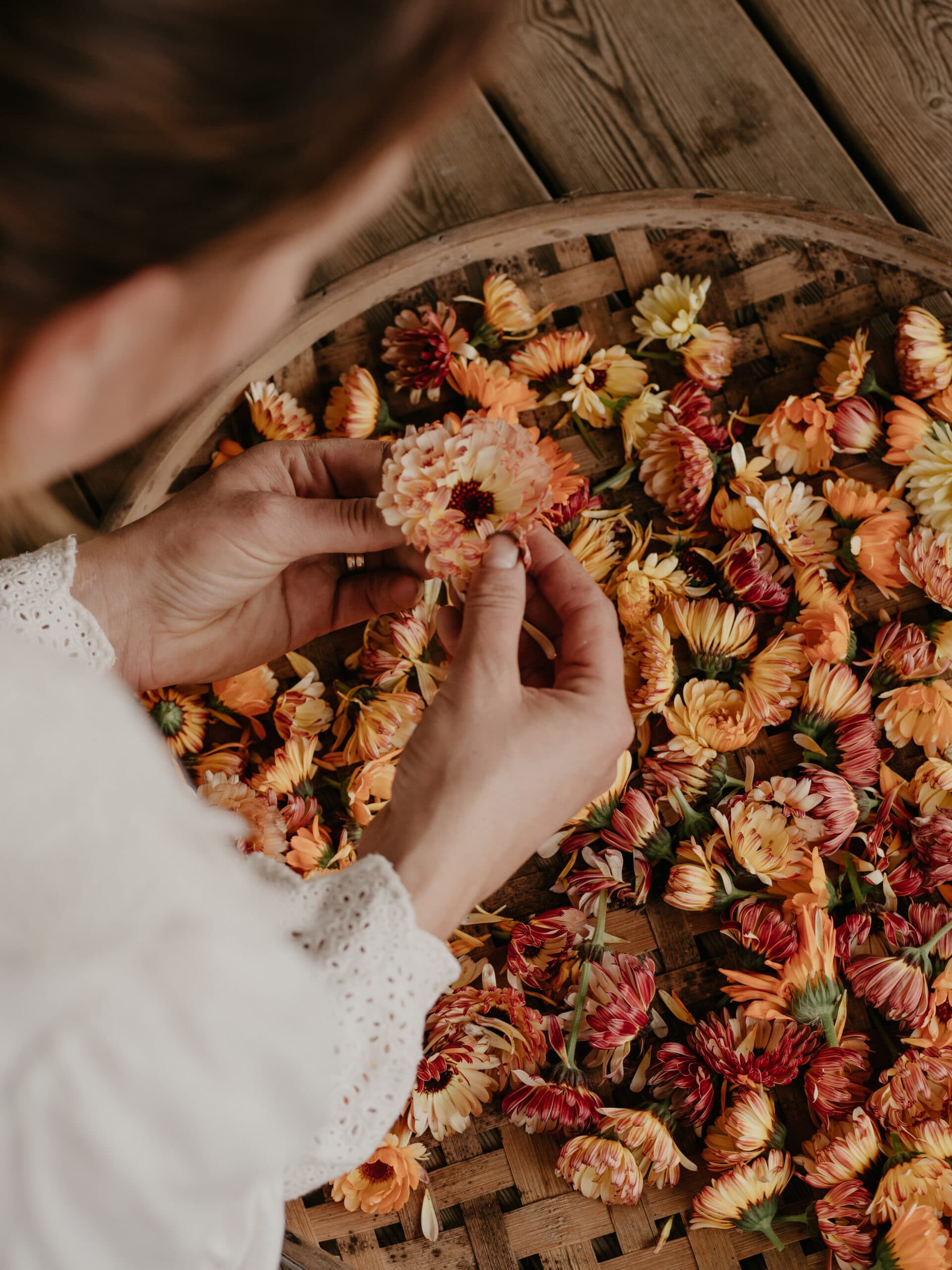 Förstärk gärna ringblommornas varma toner med slingerkrasse. Eller skapa istället en färgkontrast på fatet genom att blanda ringblommor med blåklint eller gurkört.