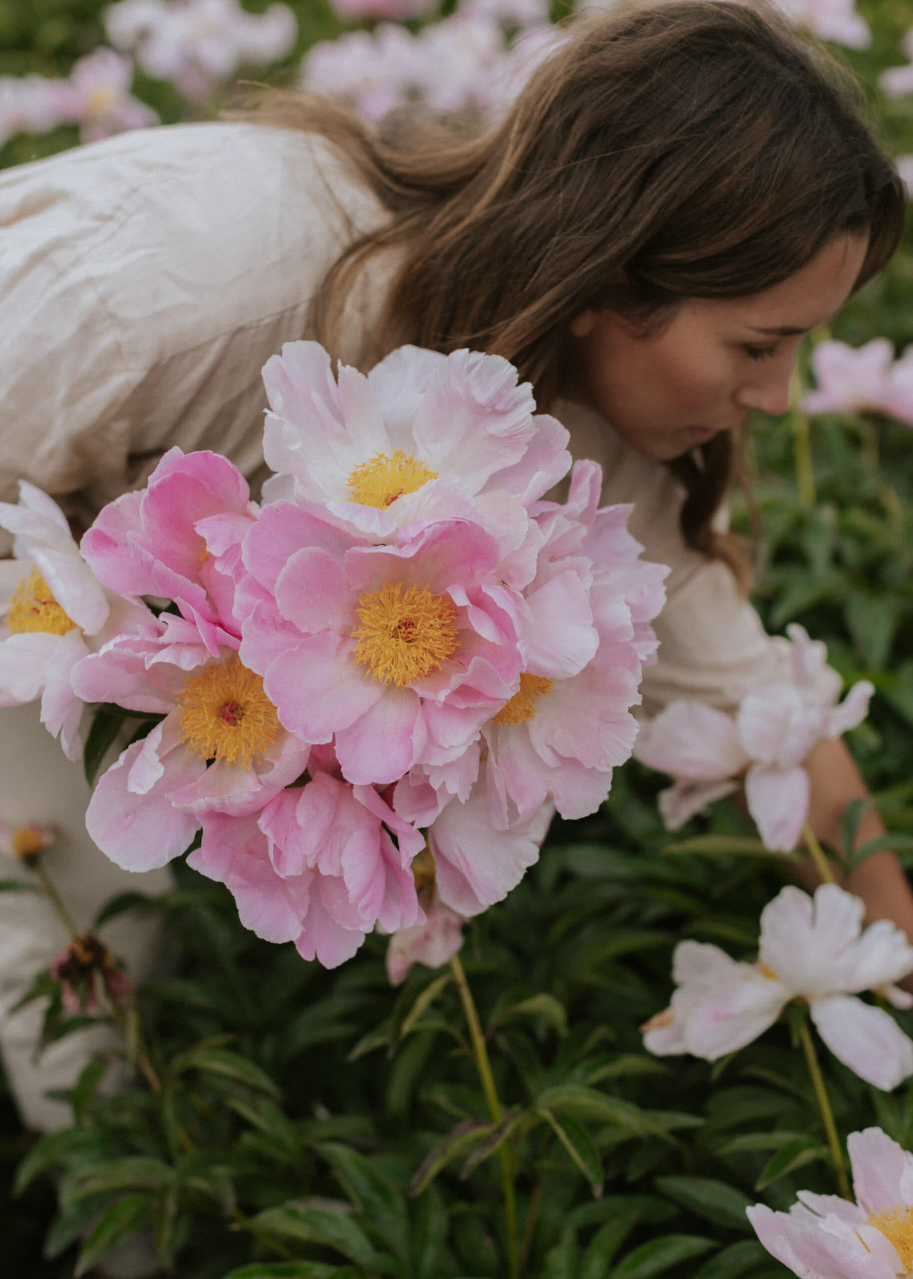 Sea Shell är en enkel blommande pion som doftar ljuvligt. Den har starka stjälkar som gör att den passar utmärkt att plocka in som snittblomma. Den börjar sin blomning i ganska kraftig rosa ton men desto längre den blommar desto mer skiftar den över mot det vita. En underbar blomma att ha hemma och följa skiftningen i färg. Vi älskar den!