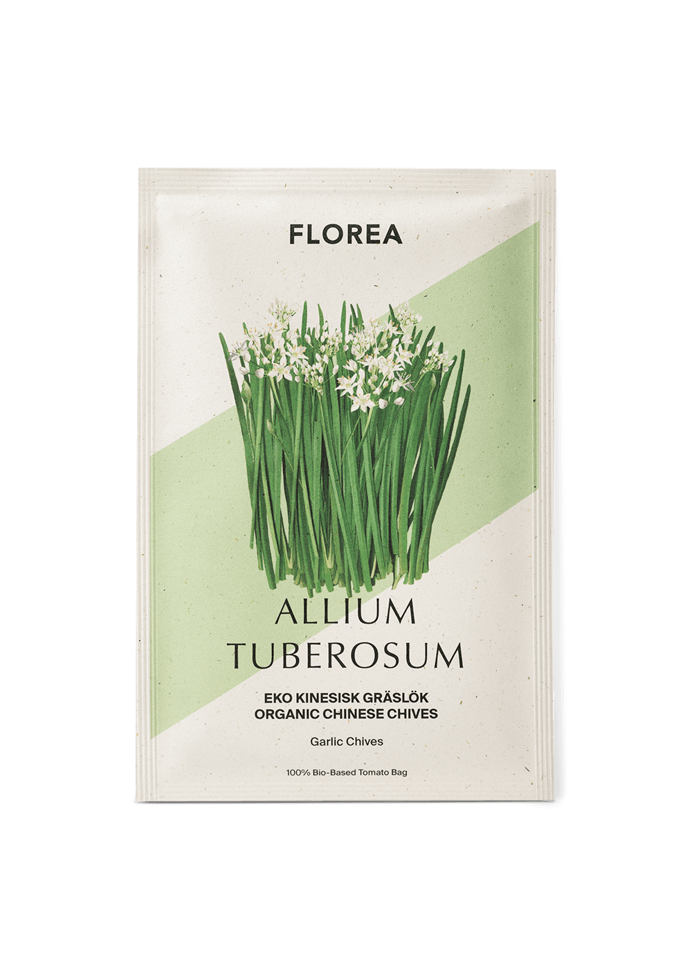 En rafflande örtkrydda som liknar gräslöken men som har en lätt och frisk vitlökssmak. Fantastisk i matlagning, som topping eller i sallader. Tillskillnad ifrån den klassiska gräslöken så har kinesisk gräslök plattare och grövre blad. Smaken påminner väldigt mycket om den klassiska gräslöken men drar mer åt vitlökshållet. Sorten får vita sagolika blommor som fungerar utmärkt som dragplåster åt alla våra pollinerare. Förutom att blommorna är tjusiga att beskåda så är de även ätbara och är riktigt goda på smörgåsen, i sallader eller som garnityr. Föreställ dig en somrig toast skagen toppad med vita blommor ifrån kinesisk gräslök, magiskt!